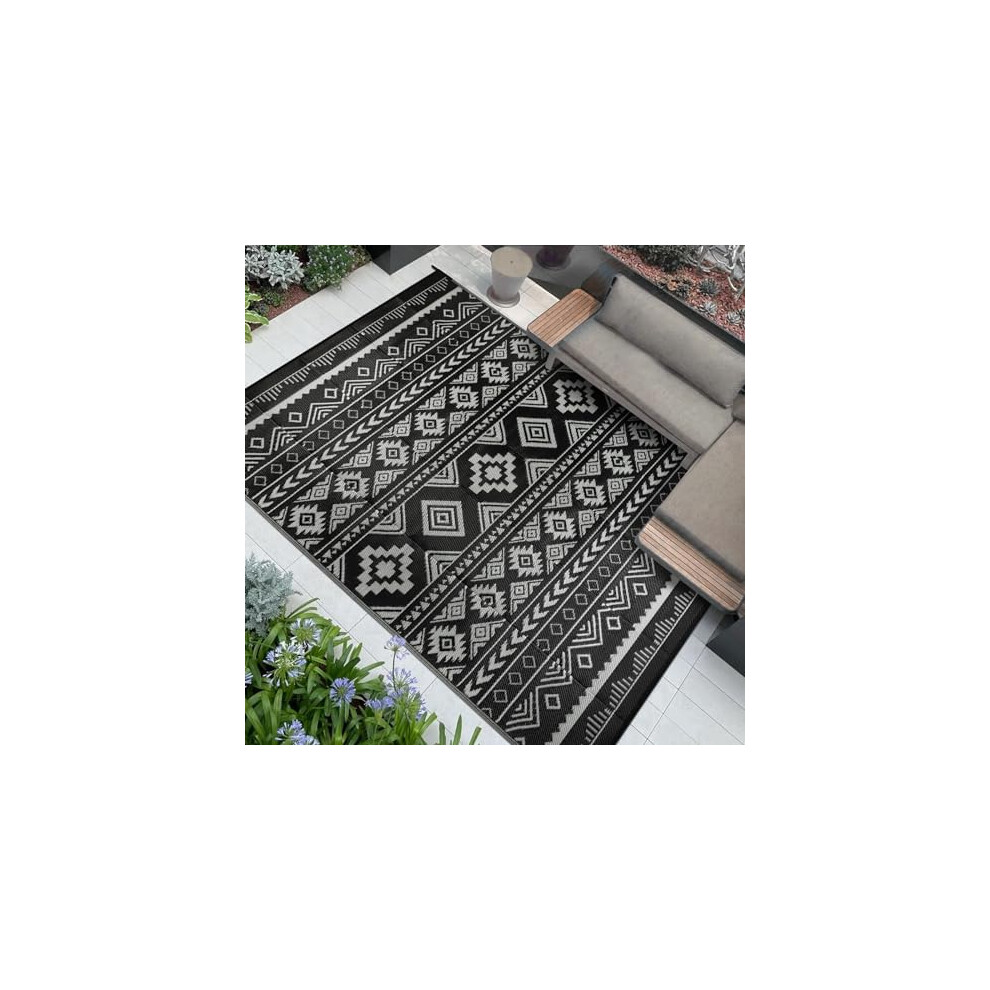 (Black) AAMEN 180x120cm Outdoor Large Rugs Waterproof Reversible Floor Mat