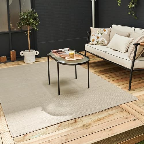 THE RUGS Urban Collection Outdoor Rug - Easy to Clean, Waterproof Plastic Outdoor Rugs for Garden, Patio, Balcony, Camping - Contemporary Plastic Straw Rug - Mono Beige, 120x160cm