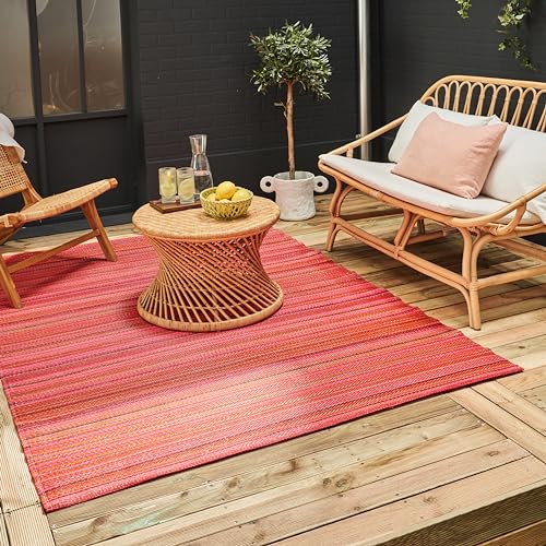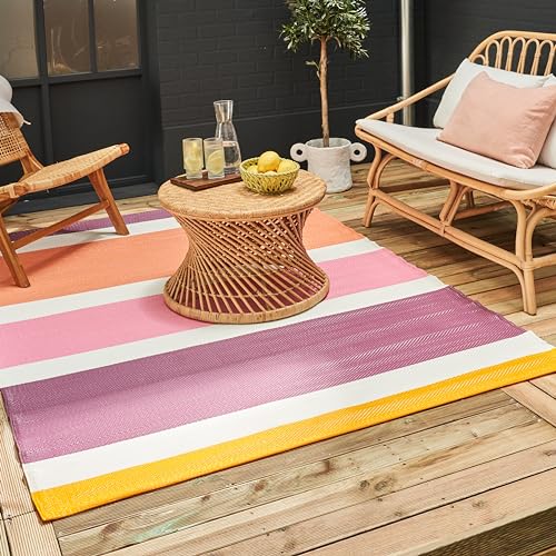 THE RUGS Rainbow Collection Outdoor Rug - Easy to Clean, Waterproof Plastic Outdoor Rugs for Garden, Patio, Balcony, Camping - Vibrant Plastic Straw Rug - Striped Pink/Orange, 180x270