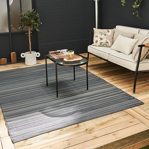 THE RUGS Urban Collection Outdoor Rug - Easy to Clean, Waterproof Plastic Outdoor Rugs for Garden, Patio, Balcony, Camping - Contemporary Plastic Straw Rug - Mono Anthracite, 150x220cm