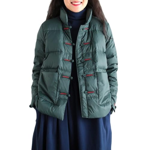 BrOleo Womens Winter Jackets,Vintage Warm Chinese Frog Button Quilted Padded Coat Lightweight Windproof Outerwear Insulated Jacket Work Outdoors Gifts For Ladies Autumn Winter,Green,L