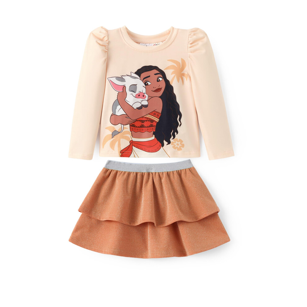 Disney Princess Moana Toddler Girl 2 Piece Outfit Puff Long Sleeve Top & Orange Sparkly Skirt Set Birthday Party Dress Fall Winter Clothes 3T