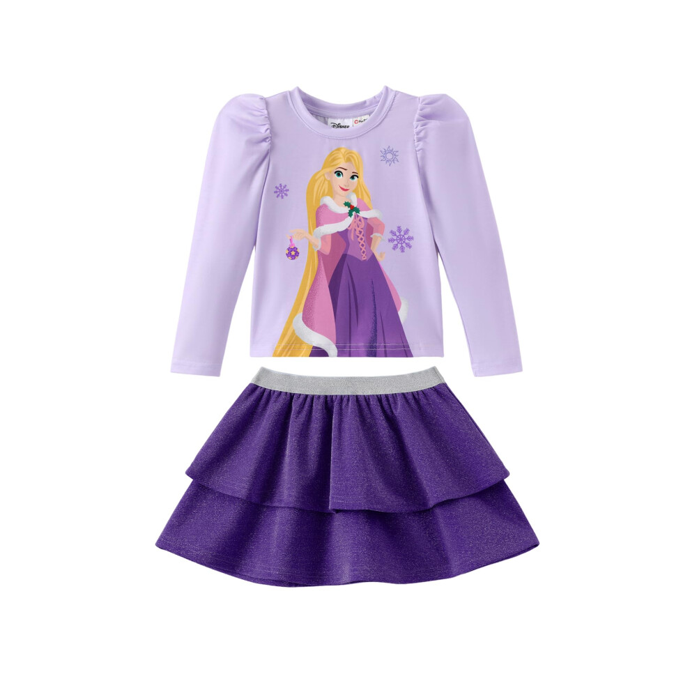 Disney Princess Rapunzel Toddler Girl 2 Piece Outfit Puff Long Sleeve Top & Purple Sparkly Skirt Set Birthday Party Dress Fall Winter Clothes 2T