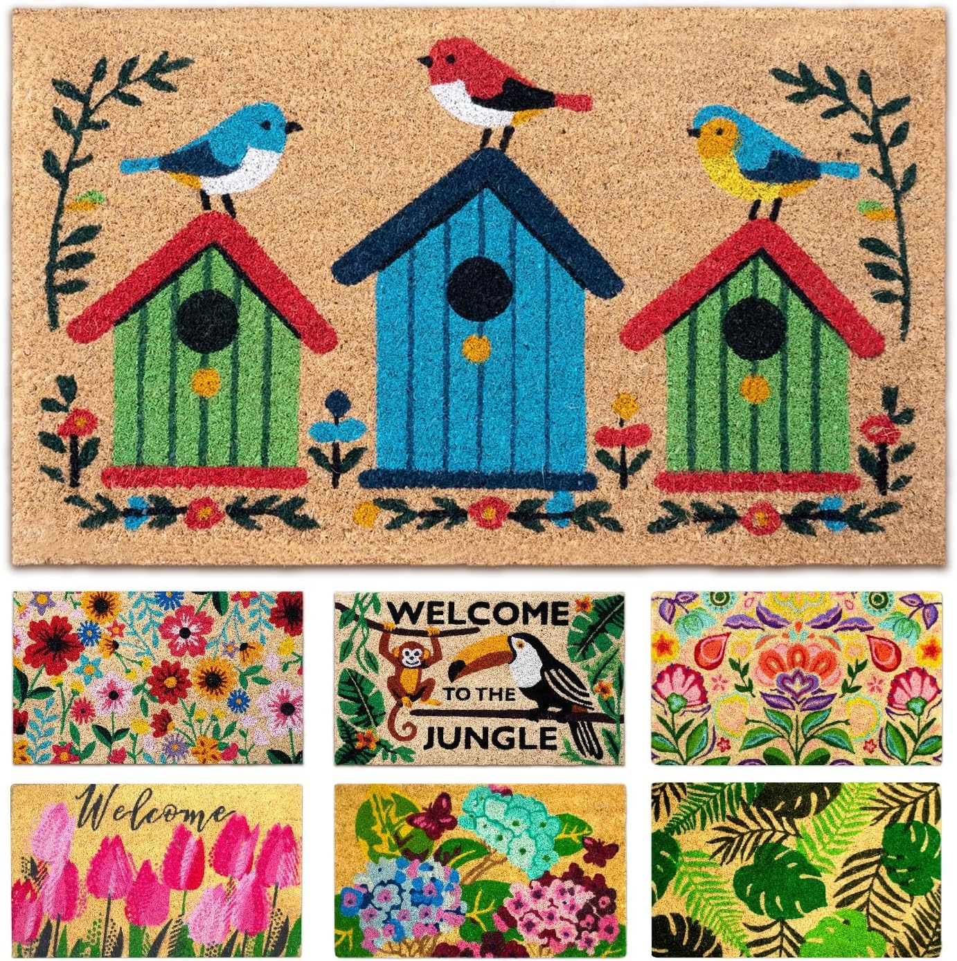 SPOTTED DOG GIFT COMPANY Coir Door Mat, Inside Outside Door Mats, Welcome Mat,