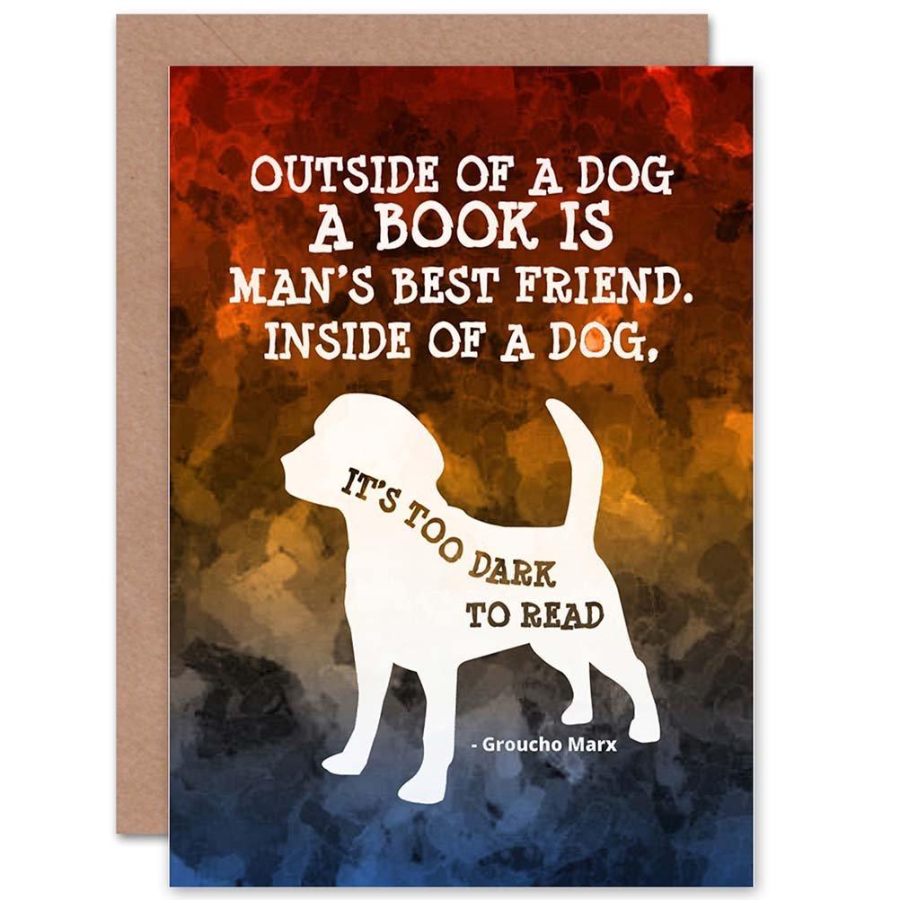 Outside Book Dog Too Dark Read Groucho Marx Joke Greetings Card Plus Envelope Blank inside