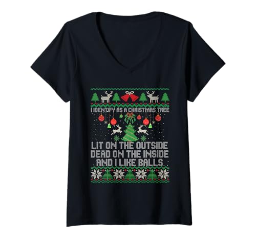 Womens I Identify As A Christmas Tree Lit On The Outside The Inside V-Neck T-Shirt