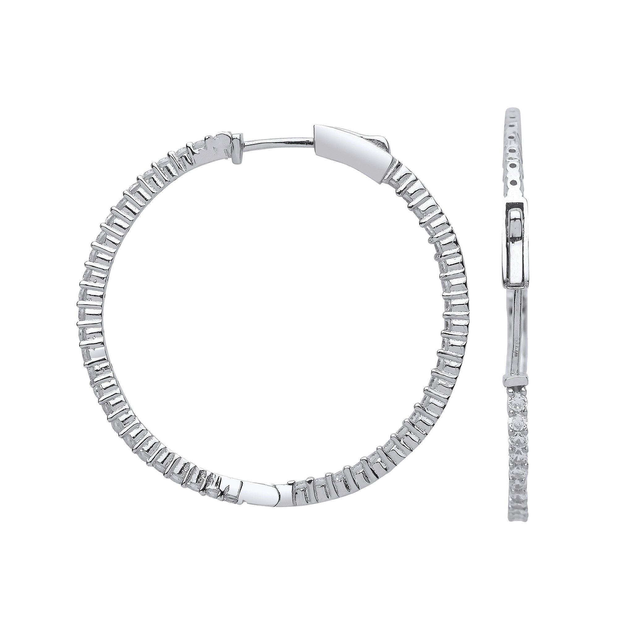 Silver CZ Inside Outside Eternity Hoop Earrings 36mm - GVE572
