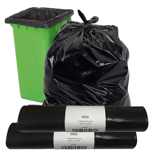 Abbey 20 Black Wheelie Bin Liners 240L Capacity – Refuse Sacks Heavy Duty Black Bin Bags for Outside and Garden Bin – Strong Garbage Bags for Rubbish On a Roll 30 Inch x 46 Inch Wide x 54 Inch Long