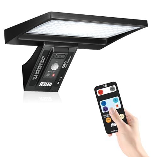 JESLED Solar Security Lights, 104 LED Motion Sensor Lights Outdoor, Remote Control, IP65 Waterproof, 3 Color Temperatures, 4 Modes Outside Lights Solar Powered for Yard, Garage, Garden (3CCT 1 Pack)