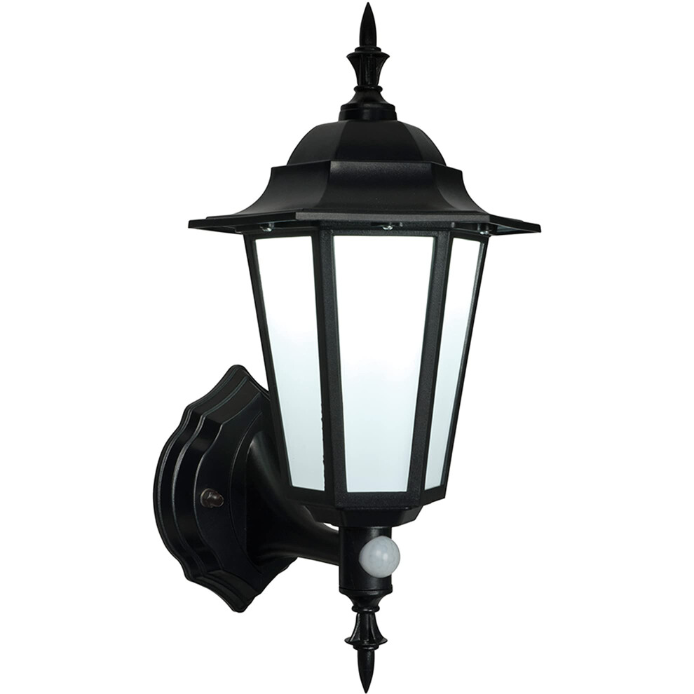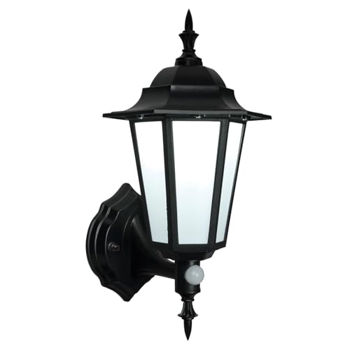 National Lighting Traditional Style PIR Lantern PIR Outside Lights - Outdoor Security Lights - Black Motion Sensor Presence Detector - IP44 Rated Outside Lamp with Integrated 7W SMD 5630 LED