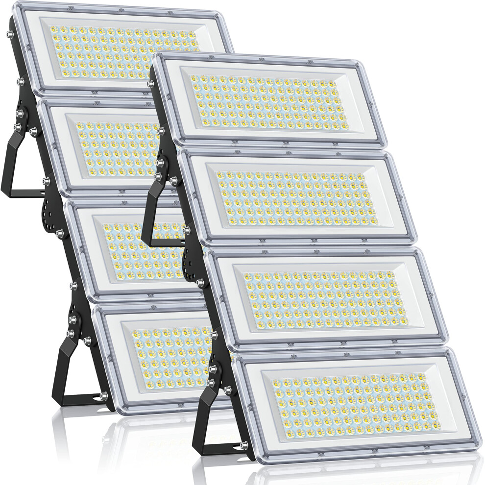 YIQIBRO 400W LED Floodlight 2 Pack, 4 in 1 LED Flood Lights Outdoor, 40000LM 6500K Daylight Outside Security Lights, IP67 Waterproof Spotlight with