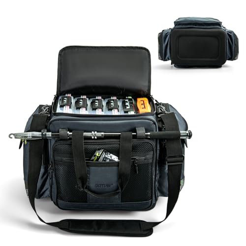 Goture Fishing Tackle Bag, 600D Waterproof Fishing Tackle Storage Bag with IPX5 EVA Bottom, SBS Zippers, Multiple Pockets to Fit 9 Tackle Boxes, Fishing Gifts for Men, Fishing Bag Black