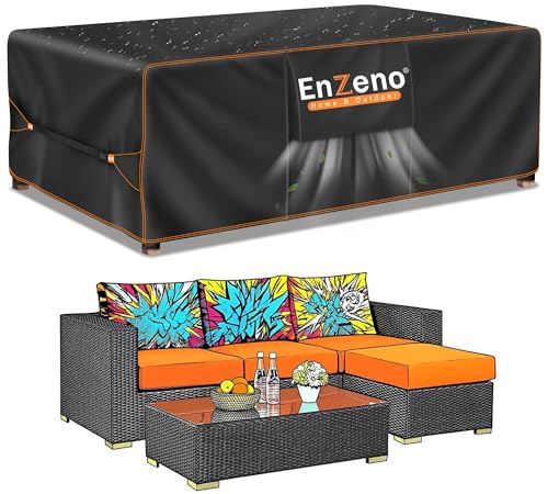 Enzeno Outdoor Garden Furniture Covers Waterproof with Air Vent, 220X100X74 cm, Patio Furniture Cover for outside Rectangle/Rectangular Table and Chair Set, rattan furniture set