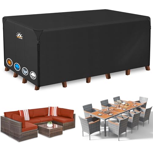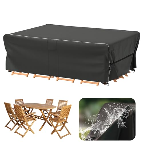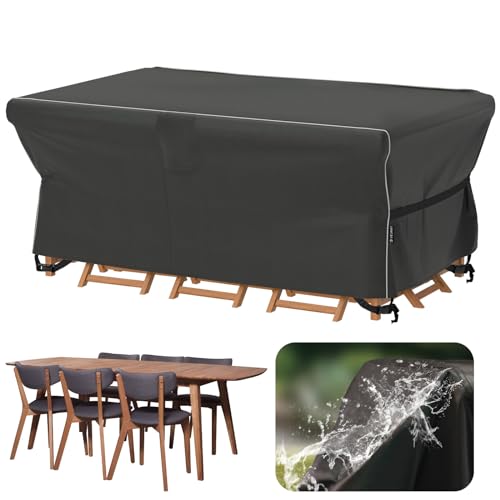 Garden Furniture Covers Waterproof for Outdoor,Large patio furniture covers for outside Rectangle Table and Chair, Windproof, Anti-UV for rattan furniture set,420d Heavy Duty 270*180 cm