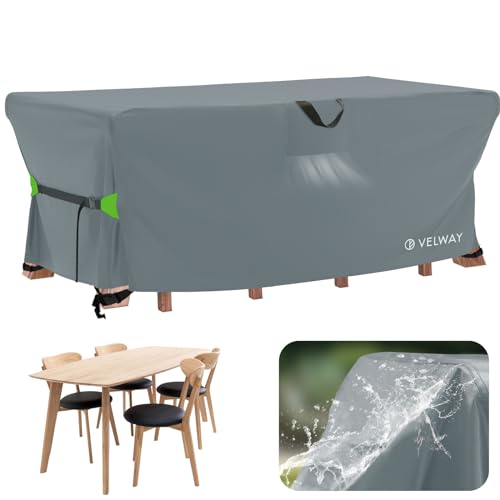 Velway Garden Furniture Covers 170x95x74cm - Waterproof Outdoor Patio Table Cover with Air Vent and Windproof Straps - Anti-UV for Outside Sofa Rectangular Table Chair Rattan Furniture Set - Grey