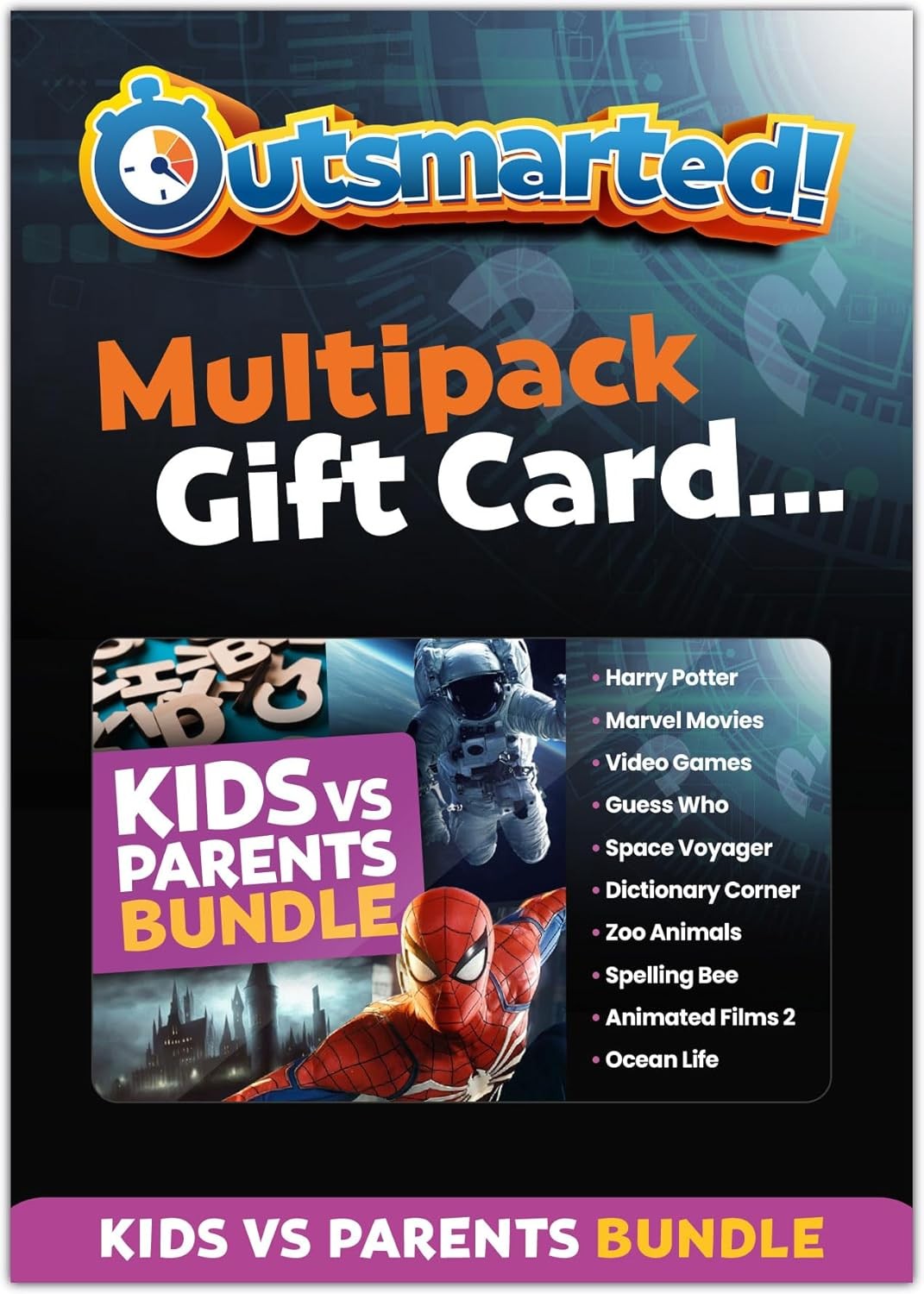 OUTSMARTED! - The Live TV Quiz Show - Multipack Gift Card - Kids vs Adults Question Bundle - Over 700 Questions, Family Games Night - Ages 8+