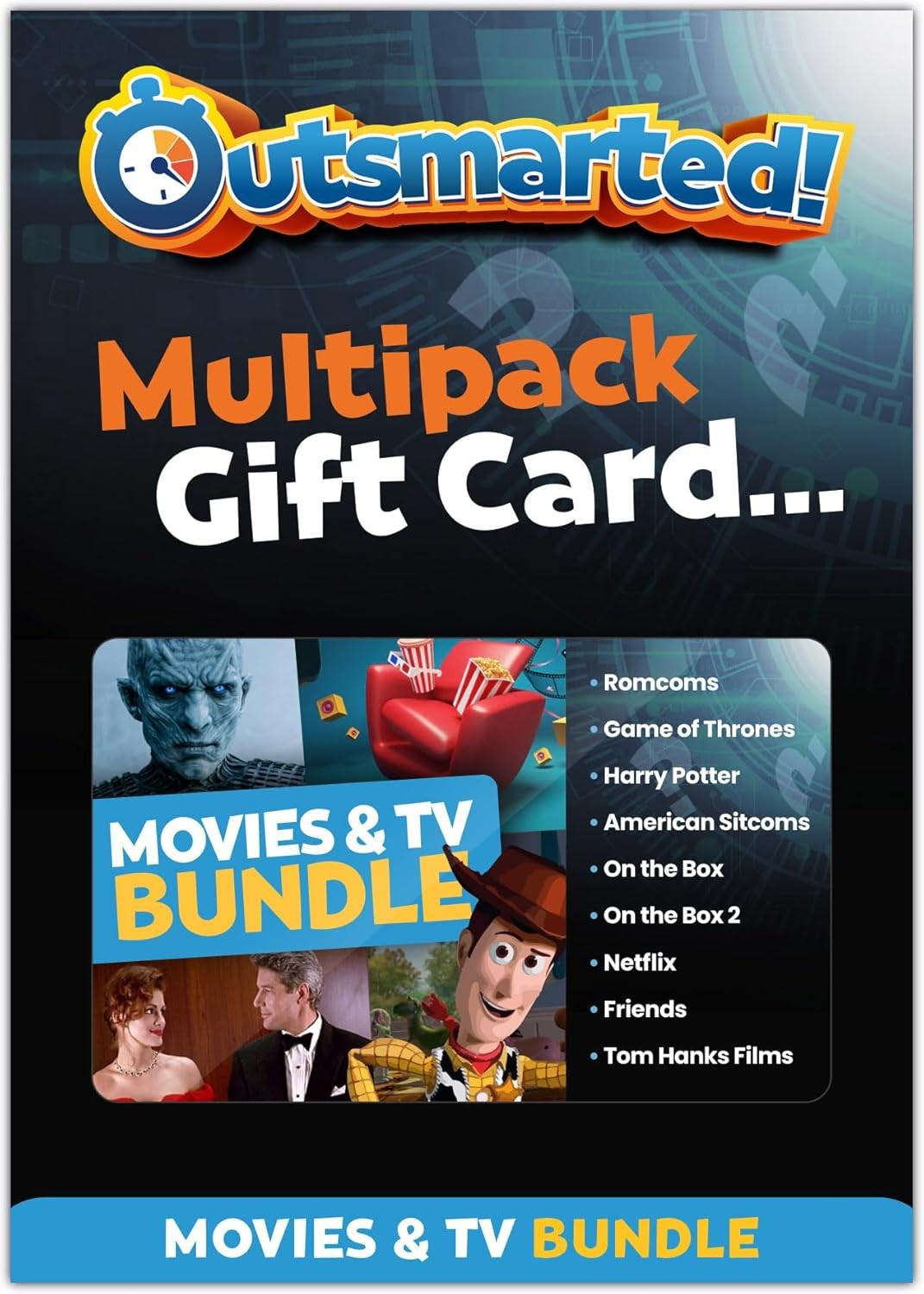 OUTSMARTED! - The Live TV Quiz Show - Multipack Gift Card - Movies & TV Question Bundle - Over 700 Questions, Family Games Night - Ages 8+