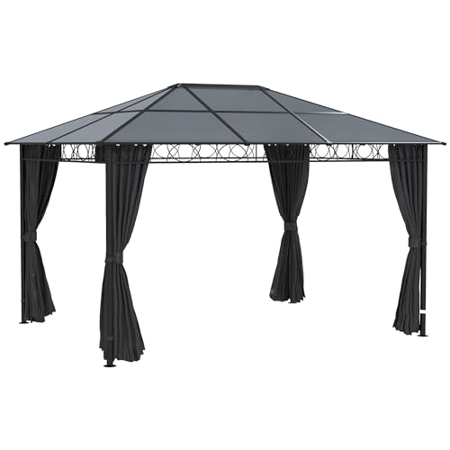 Outsunny 3 x 4 m Hardtop Gazebo with PC Roof, Aluminium Frame, Dark Grey