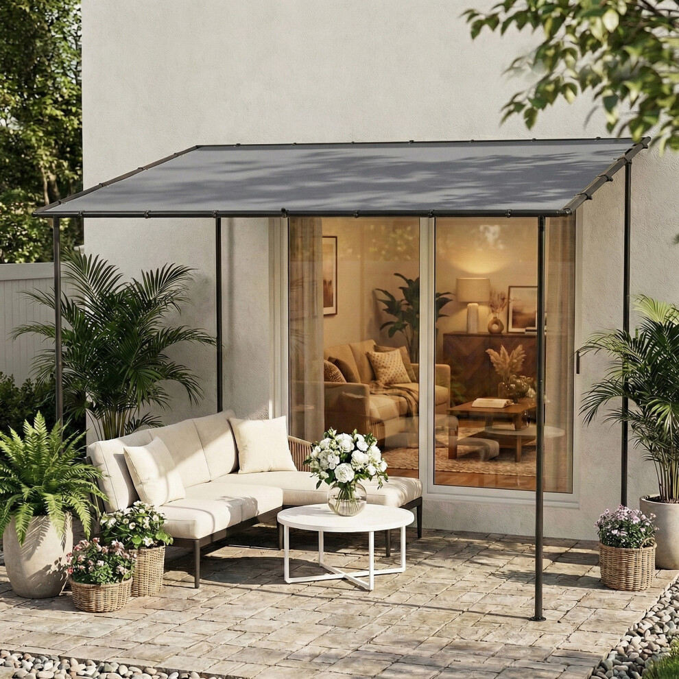 Outsunny 3 x 2 m Lean to Garden Pergola, Metal Frame Gazebo Pergola, Grey