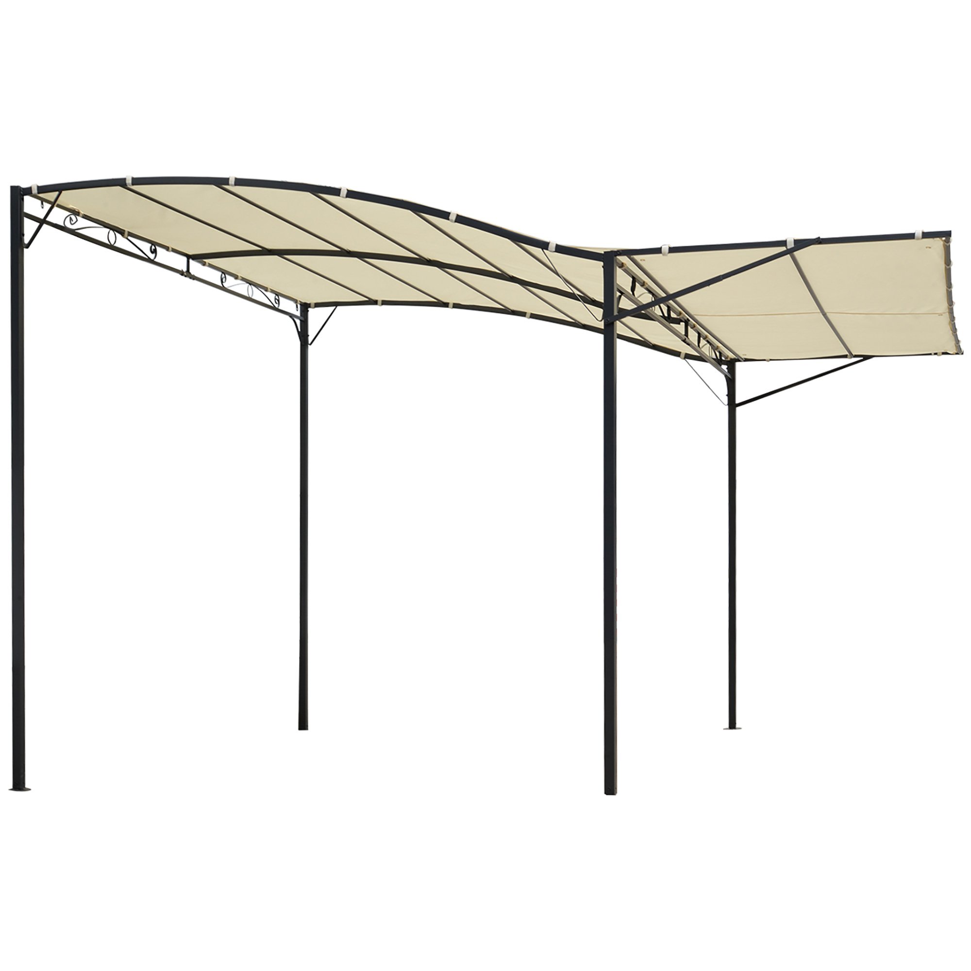 Outsunny 3 X 2.5 M Metal Pergola Wall Mounted Gazebo Door Canopy For Party Garden Sunshade With Extended Shelter, Cream White