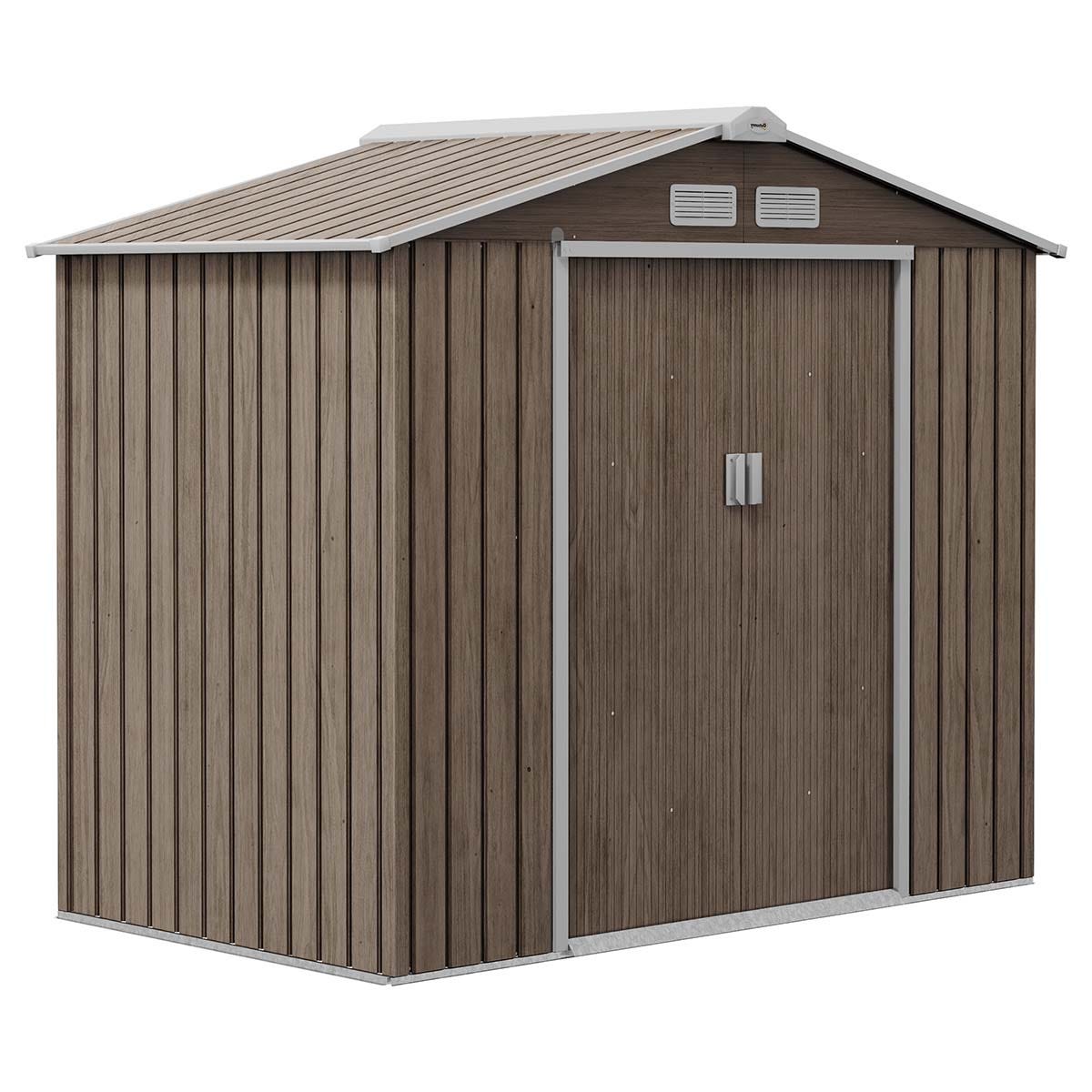 Outsunny Shed Storage Unit 7ft x 4ft with Floor Foundation and Air Vent, Light Brown