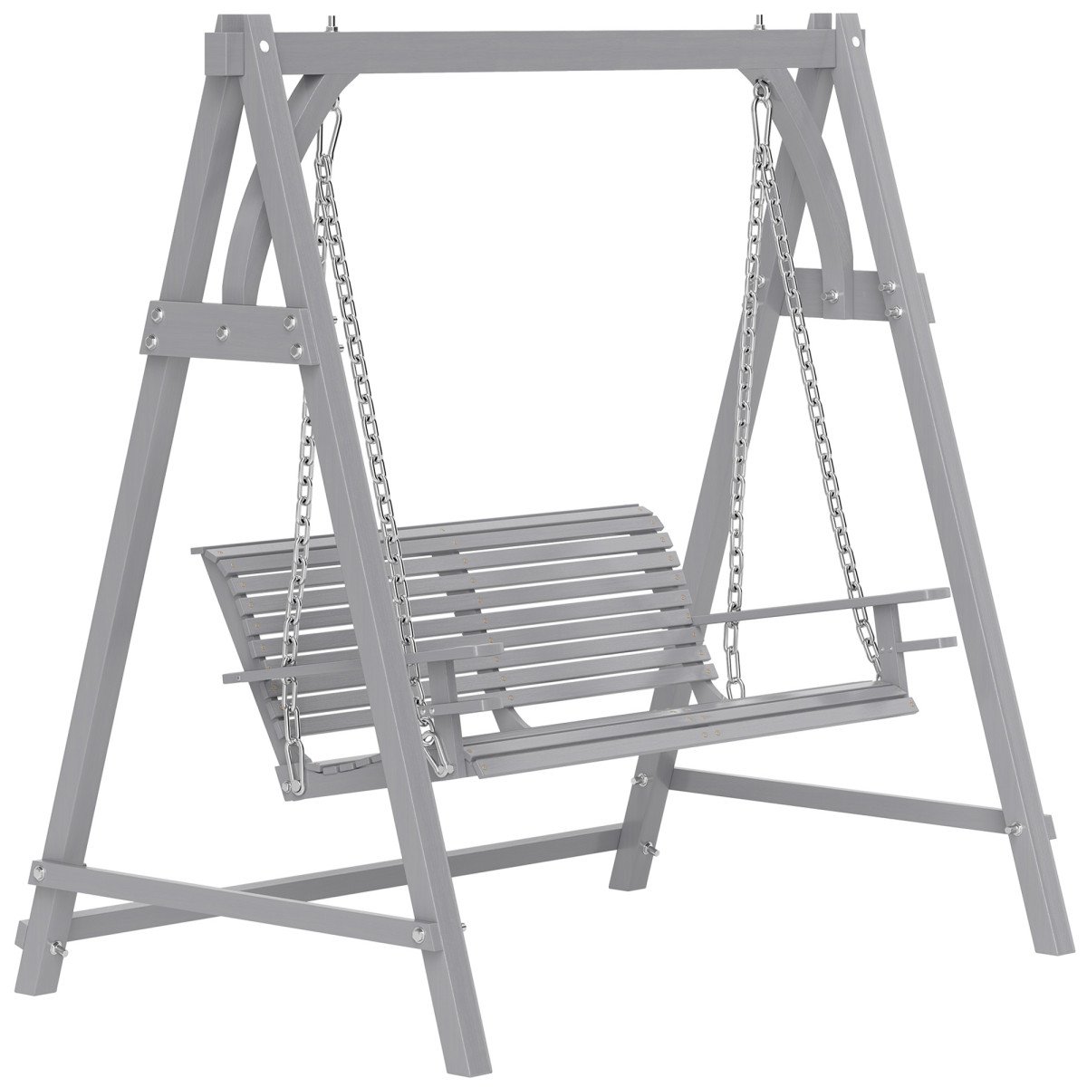 Outsunny 2 Seater Wooden Garden Swing Seat Hammock Bench Lounger, Grey