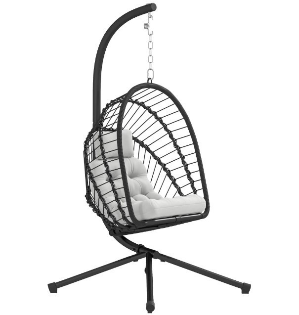 Outsunny PE Hanging Swing Chair w/ Thick Cushion Patio Hanging Egg Seat Black