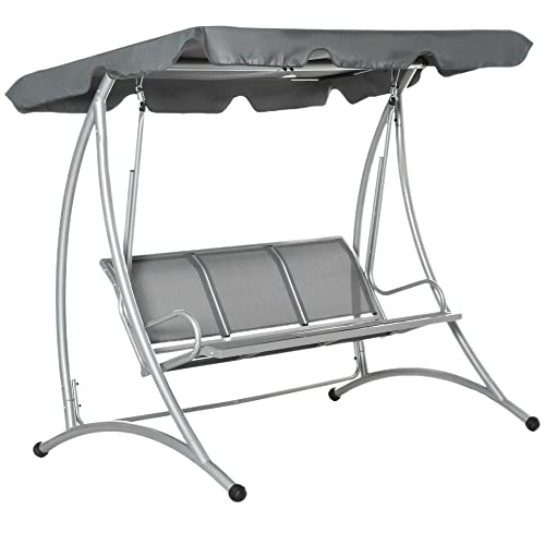 Outsunny 3-Seater Garden Swing Seat, Outdoor Swing Chair with Canopy, Grey