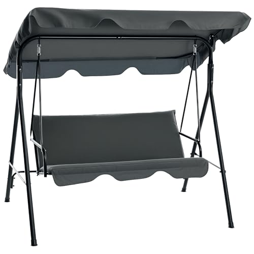 Outsunny 3 Seater Garden Swing Seat Bench w/ Adjustable Canopy, Dark Grey