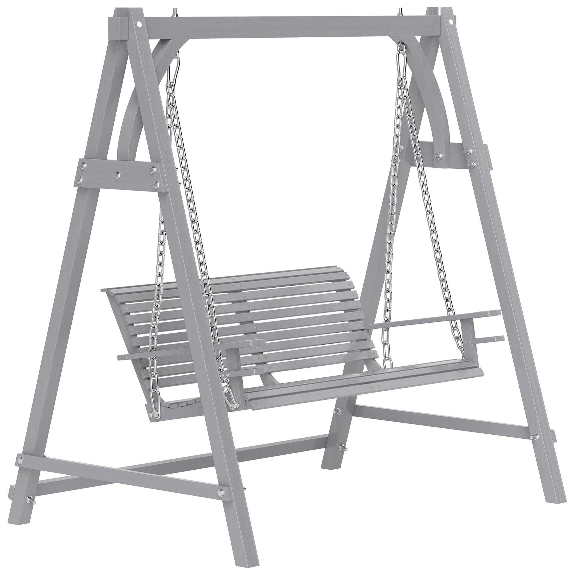 Outsunny 2 Seater Garden Swing Seat Larch Wood Swing Chair Hammock Bench Lounger - Grey