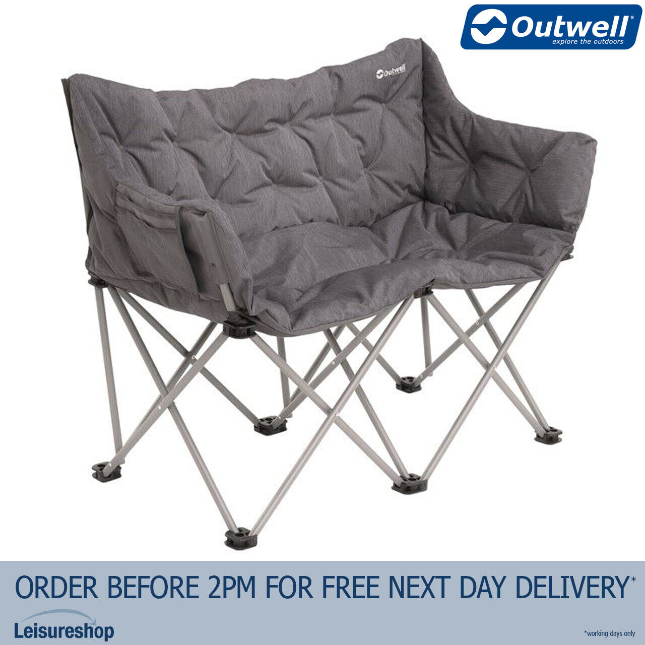 Outwell Sardis Lake Folding Camping Sofa Chair – Padded Double Outdoor Chair with Steel Frame, Carry Bag & Storage Pocket - For Camping, Garden, Outdoors, Sports (Chair)