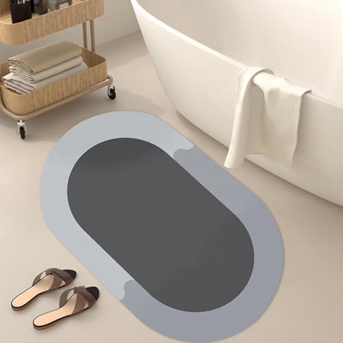 Diatom Mud Bathroom Mat, Extra Soft Non-slip Bath Mats, Oval Quick Dry Bathroom Mats for Outside the Shower Room Kitchen In Front of the Sink(Grey,15.75"x23.62")