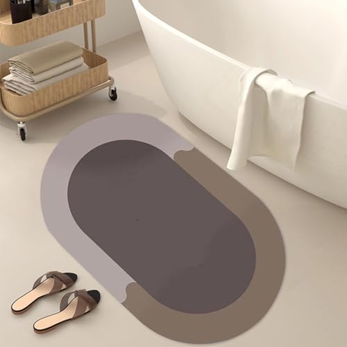 Diatom Mud Bathroom Mat, Extra Soft Non-slip Bath Mats, Oval Quick Dry Bathroom Mats for Outside the Shower Room Kitchen In Front of the Sink(Brown,19.68"x31.49")