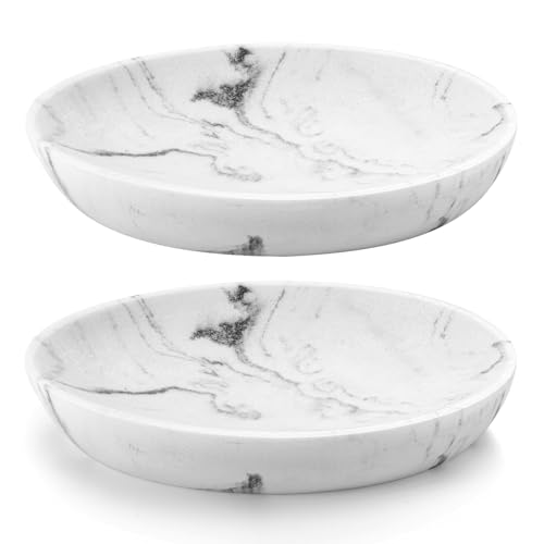 Luxspire Soap Dish 2 Packs, Resin Soap Tray Soap Holder Container Box, Marble Pattern Oval Soap Plate Case, Sponge Dish Scrubbers Tray Holder for Bathroom Vanity Shower Kitchen Sink, Gravel White