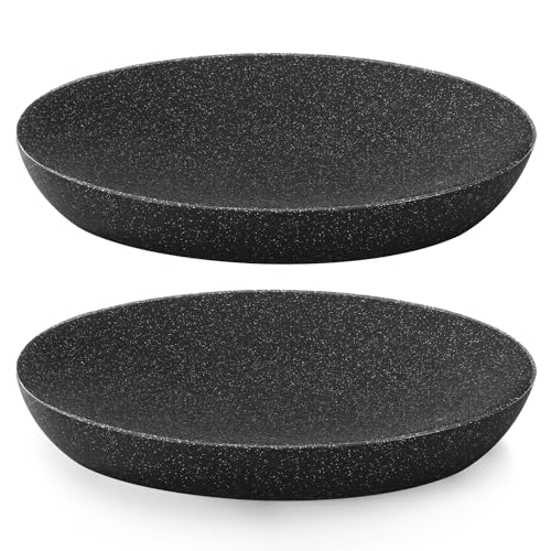 Luxspire Soap Dish 2 Packs, Resin Soap Tray Soap Holder Container Box, Marble Pattern Oval Soap Plate Case, Sponge Dish Scrubbers Tray Holder for Bathroom Vanity Shower Kitchen Sink, Gravel Black