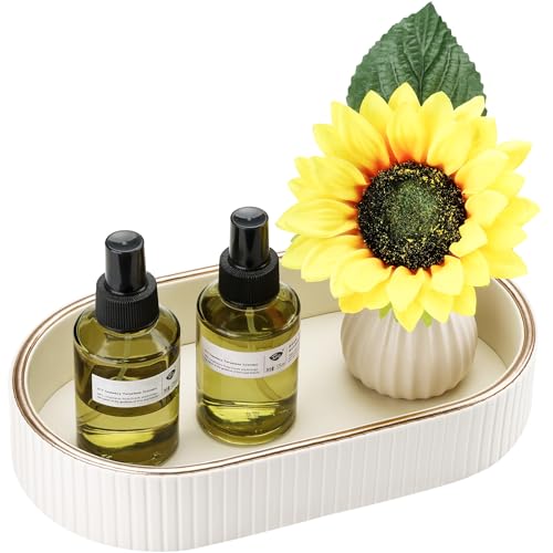 GORESE Bathroom Tray, Leather Oval Decorative Tray Bath Decor Jewelry Tray Vanity Tray Valet Tray Table Tray for Bathroom,Dressing Table,Soap Dispenser,Toilet,Bathtub,Candles,Kitchen Sink(Ivory White)