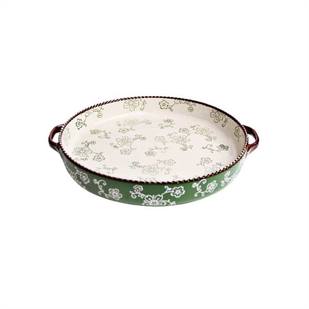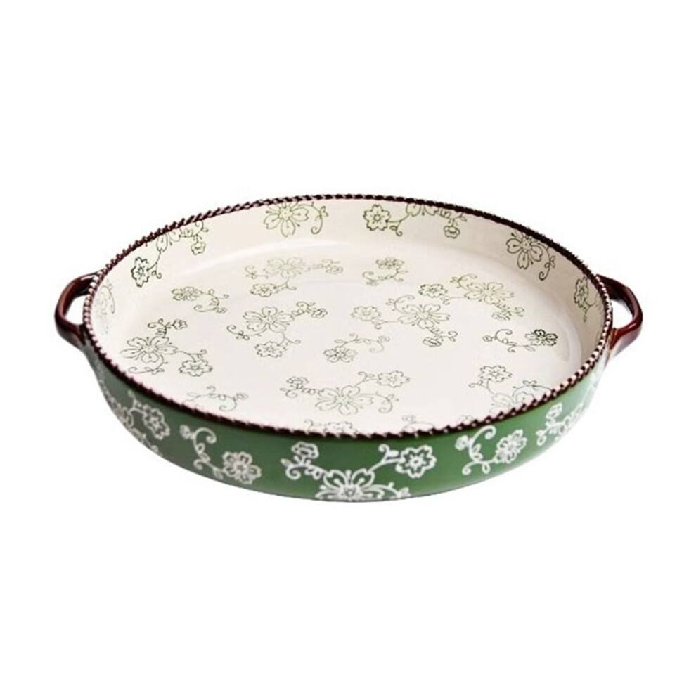 Ceramic Double Ear Baking Pan Oven Cheese Baked Rice Tray Green