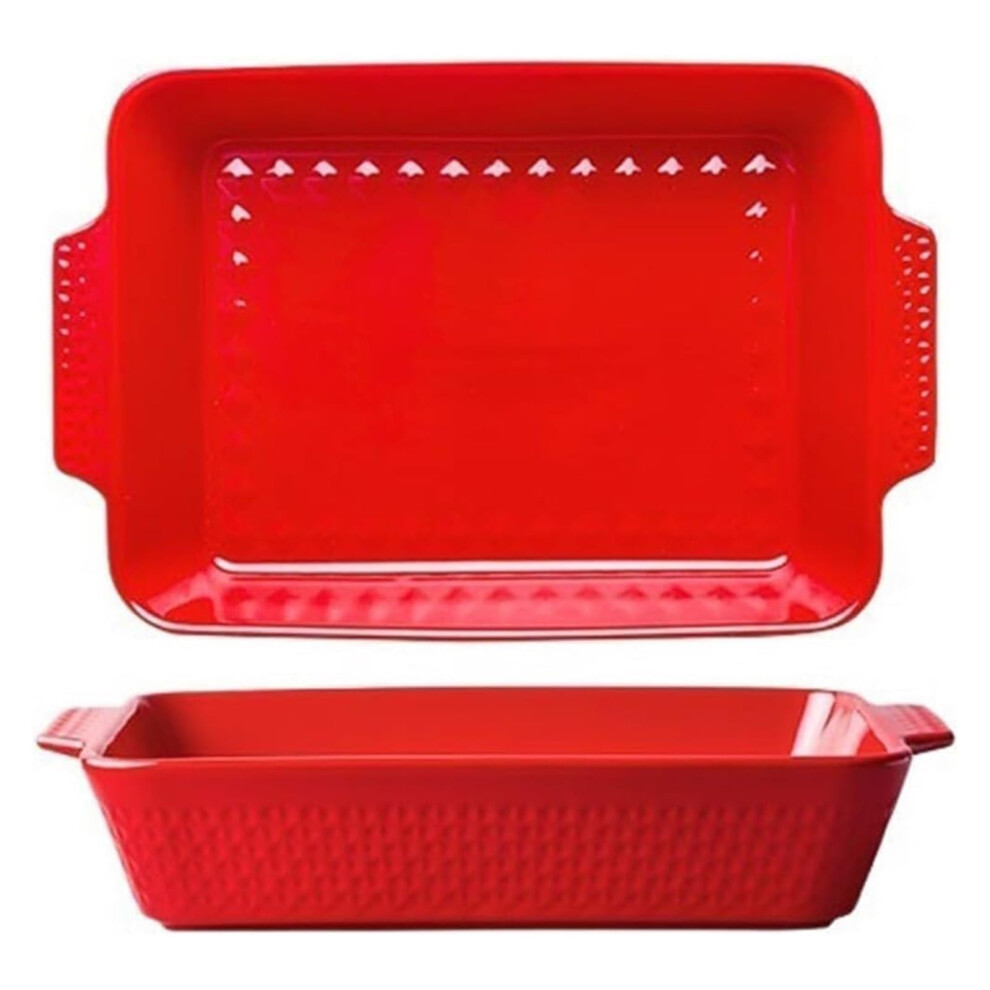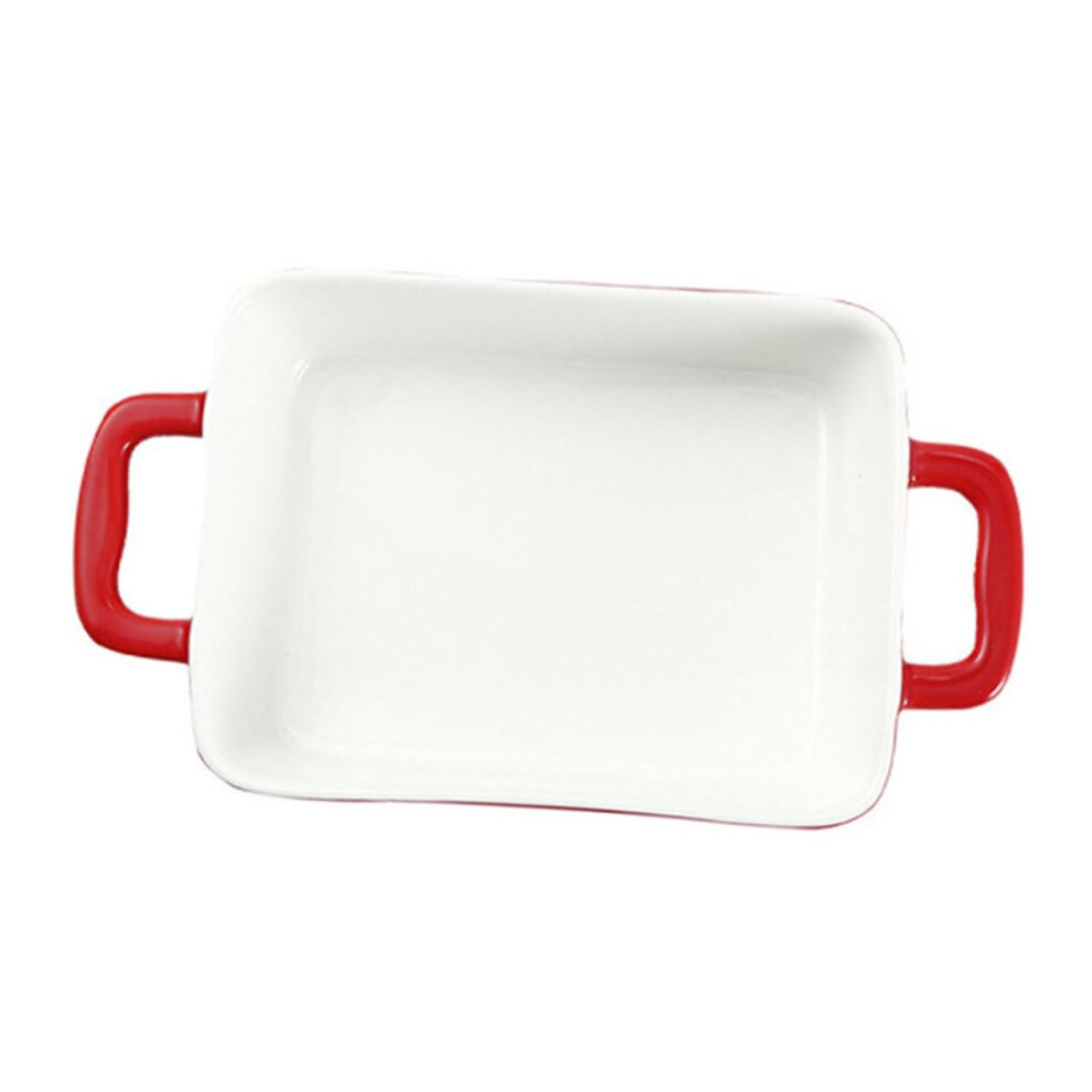 Baking Mould Red Ceramic Baking Tray Double-Eared Rectangular Roasting Dish for Microwave Oven and Baked Rice