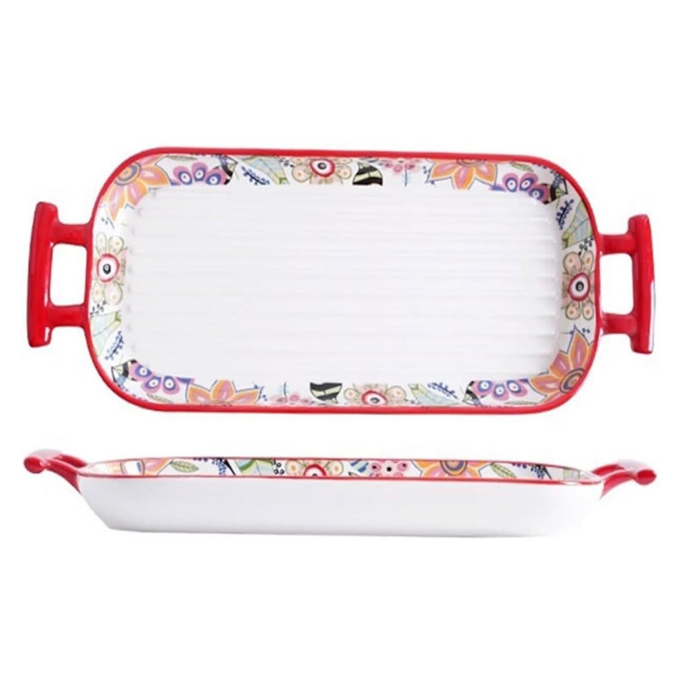 Ceramic Baking Mould 32.2cm Rectangular Tray with Double Ears for Microwave Oven Steamer Baked Rice