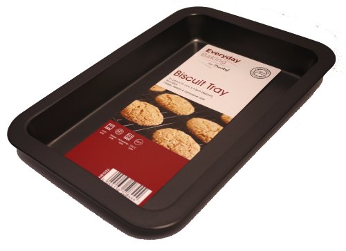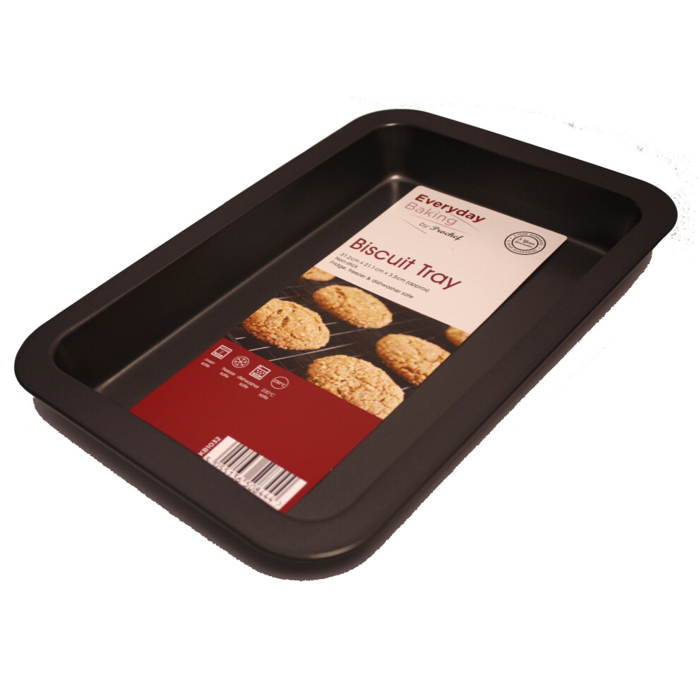 Prochef Medium Non-Stick Carbon Steel Biscuit Oven Tray for Biscuits, Cookies, Flapjacks & Baked Cakes - 32.3cm x 21.7cm x 3.4cm - Black