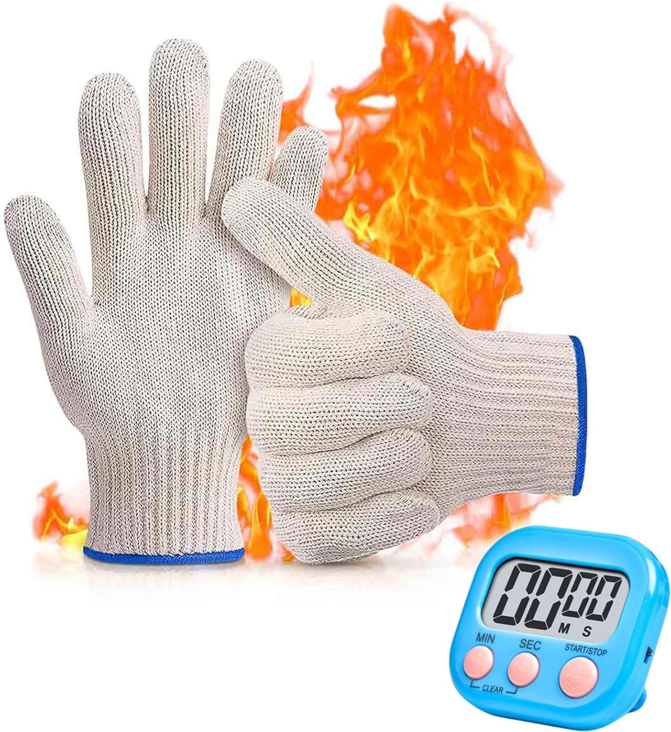 Heat Proof Gloves, Kitchen Timer Set, Oven Gloves Heat Resistant with Fingers,