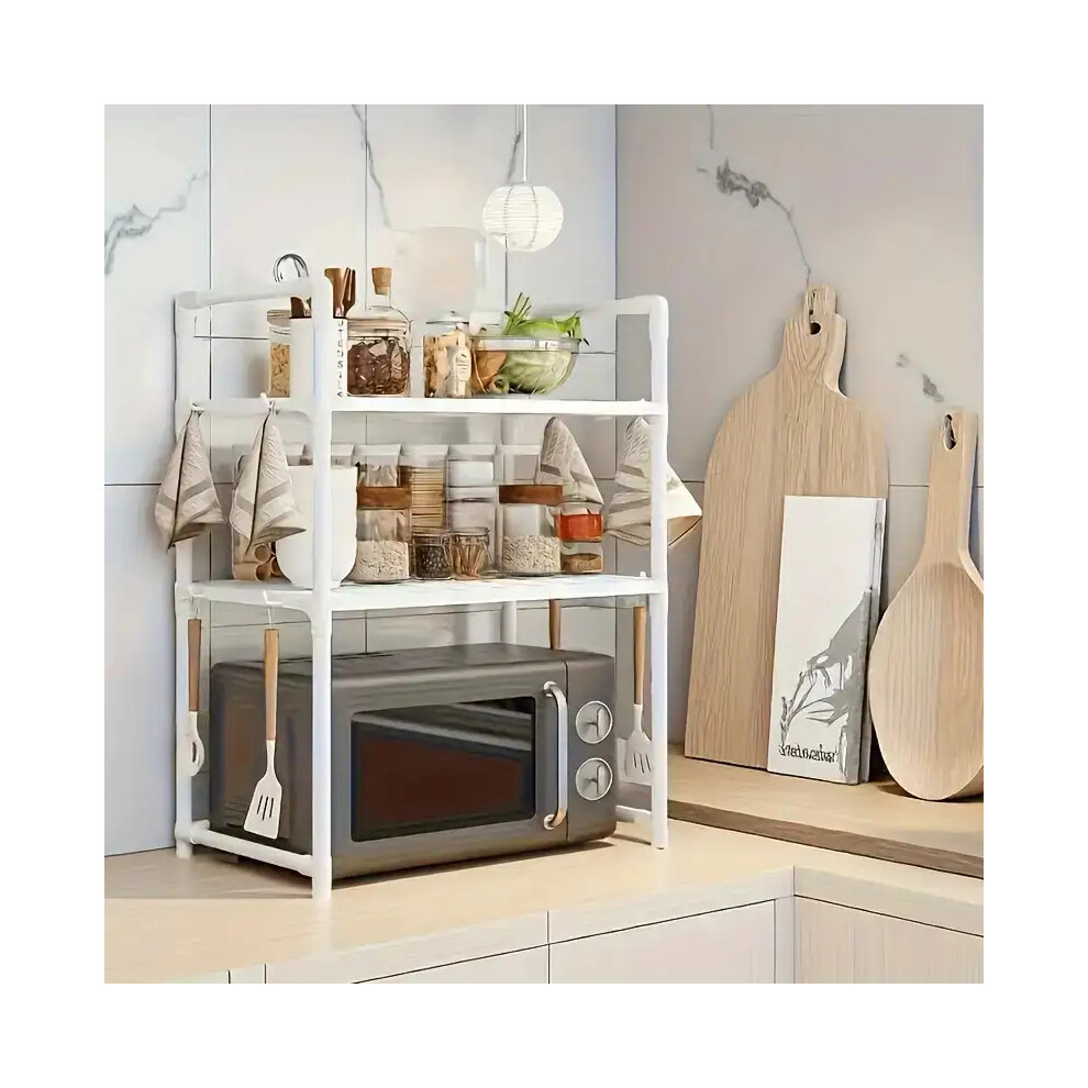 (White, 905 on the second floor) Y905 Heavy-Duty Expandable Microwave Oven Shelf with 6 Hooks, Easy Assembly, Kitchen Storage Solution| Modern Kitchen