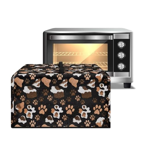 ZIATUBLES Dust Cover for Microwave Oven Portable Countertop Microwave Protector Stain-Resistant Brown Dog Paw Cow Print Canvas Air Fryer Toaster Oven Covers, S