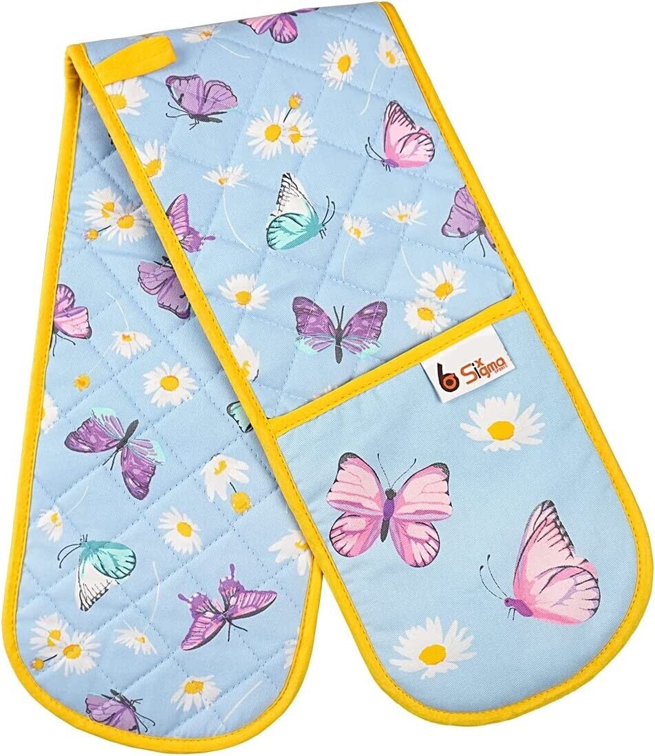 Double Oven Gloves UK Mitts Heat Resistant Mitten Heavy Duty Kitchen butterfly