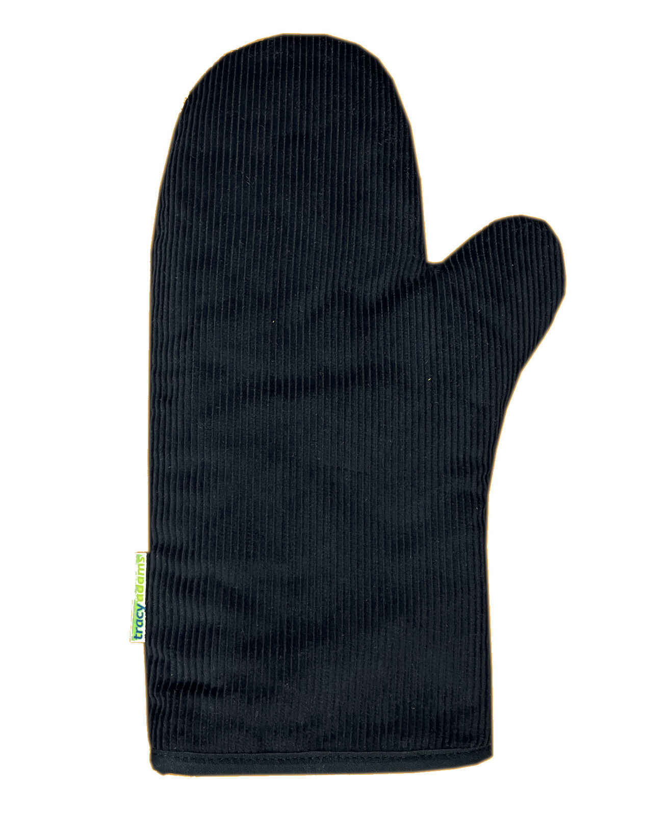 Single Gauntlet Oven Glove UK Made Black Corduroy Pot Holder Cotton Cord Mitt