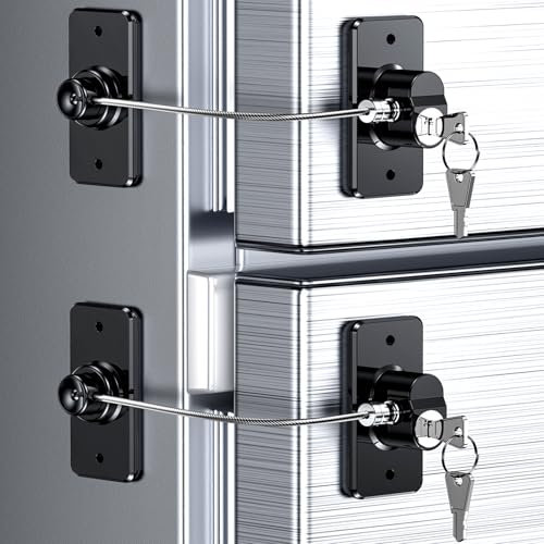 2 Pack Refrigerator Locks with Keys for Kids, Toddlers and Adults, Self Adhesive Child & Baby Proofing Fridge Latch for Fridge, Cabinets and Drawers, Oven, Windows (UK-Patent) (2 Pack Black)