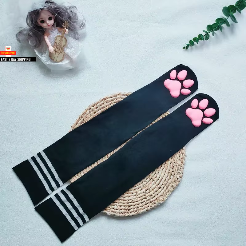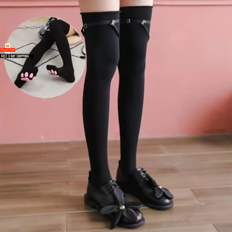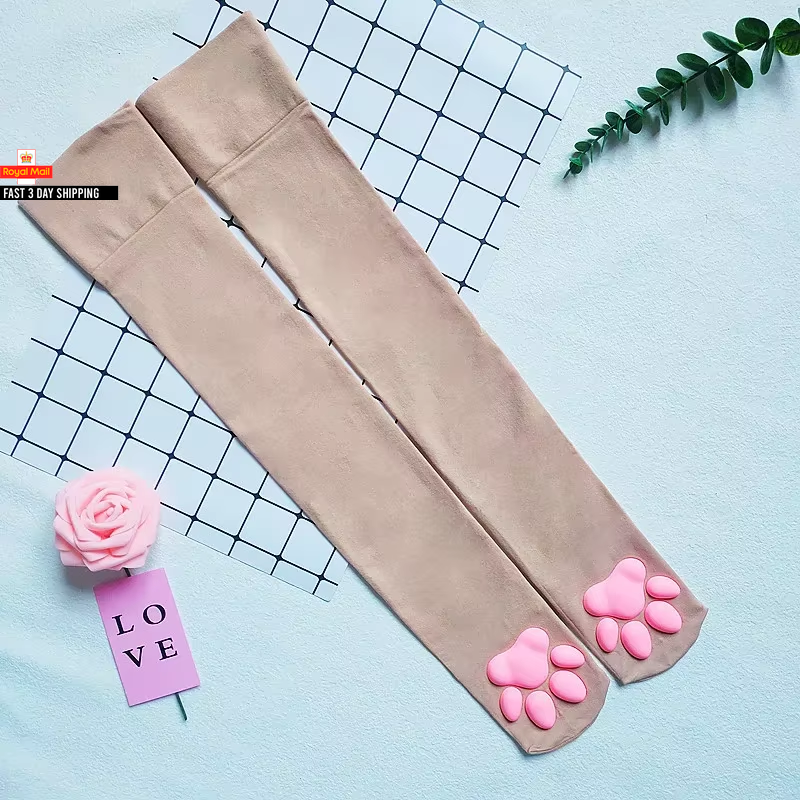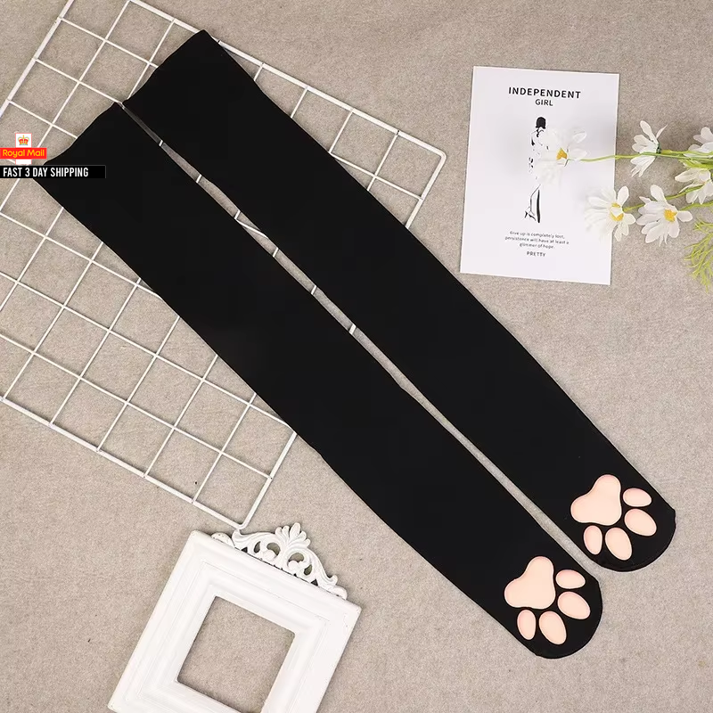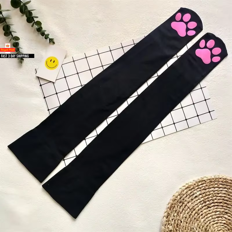 Womens over above Knee Socks Thigh High Stockings Kitten Claw Cat Paw Pad Ladies