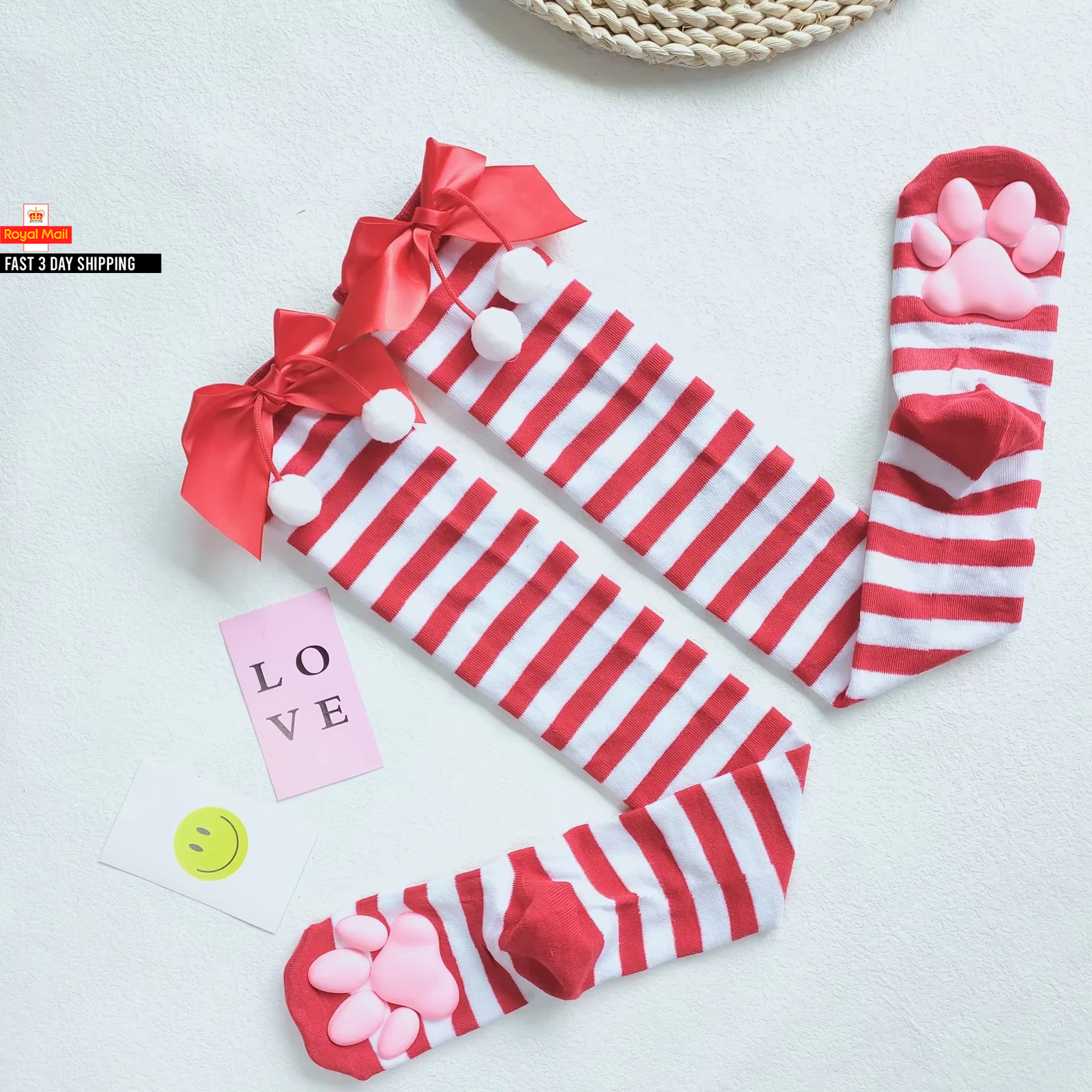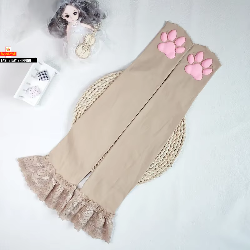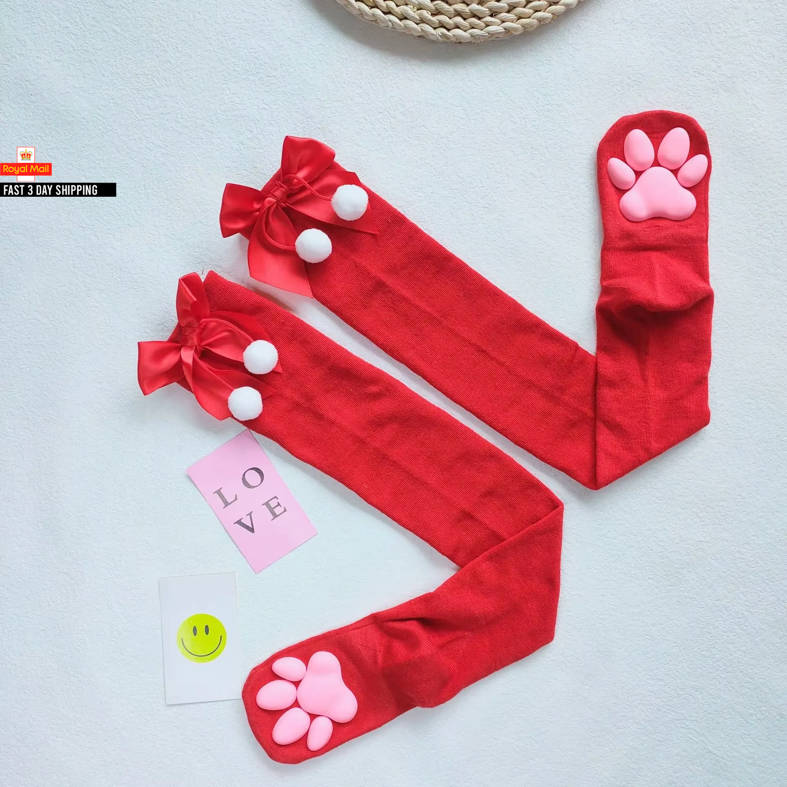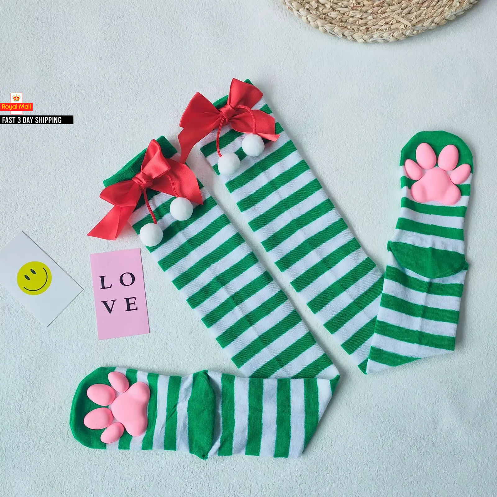 Womens over above Knee Socks Thigh High Stockings Kitten Claw Cat Paw Pad Ladies