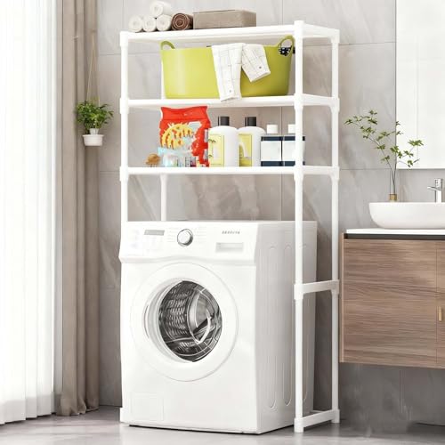 kumamart Freestanding Over Washer Storage Rack, Above Toilet Shelf Organizer for Bathroom, Kitchen & Laundry(White,3-t)