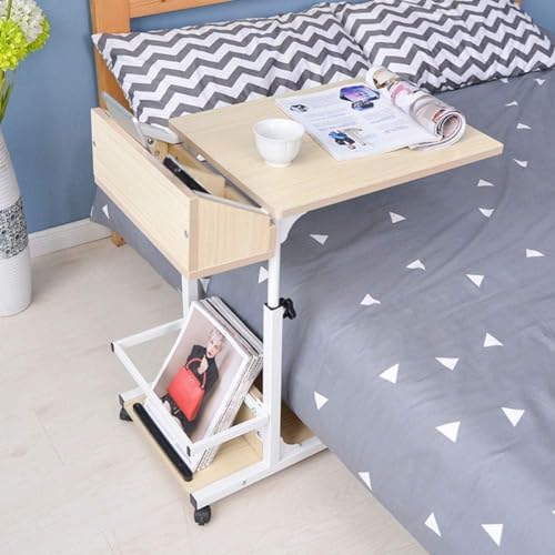 GTOULHH Computer Desk Height Adjustable Overbed Bedside Table With Magazine Rack Storage And Couch Wheels Rolling Stand Laptop Over Bed Table(White)